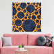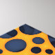 A vibrant pattern showcases a series of interconnected dark blue circles set against a bright orange background, creating a striking contrast. The overlapping arrangement gives a sense of depth and movement. Illustration design of trippy abstract orange and blue lava slime holes. Tags: abstract, dots, geometric, crazy, orange, blue, hallucinogenic, holes, psychedelic, lava, trippy, trypophobia