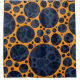 A vibrant pattern showcases a series of interconnected dark blue circles set against a bright orange background, creating a striking contrast. The overlapping arrangement gives a sense of depth and movement. Illustration design of trippy abstract orange and blue lava slime holes. Tags: abstract, dots, geometric, crazy, orange, blue, hallucinogenic, holes, psychedelic, lava, trippy, trypophobia