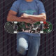 Demon slaying skater against graffiti wall, in slightly more subtle tones.
