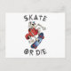Cool and creepy Halloween design featuring a skateboarding funny Skeleton and the quote "Skate or die". A perfect match for the Halloween party as well as for daily use.