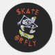 Skate or Fly Skeleton Skateboarder Classic Round Sticker