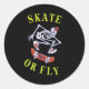 Skate or Fly Skeleton Skateboarder Classic Round Sticker