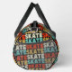 SKATE repeated for Skateboarder on Black Duffle Bag