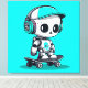 A playful mix of quirky charm and cool vibes with an adorable robot confidently skating.