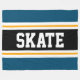 This sporty, athletic design features bold SKATE text inside a highlighted wide black stripe with double white and yellow racing stripes against teal blue outer stripes. The text can be personalised.