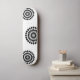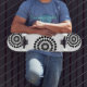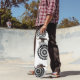 Skateboard shown in a black and white abstract graphic print.