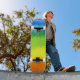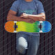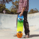 This quality made skateboard is shown with a abstract art pattern print in colours of the rainbow.