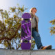 Skateboard shown in a multi purple colour abstract smoke graphic print.