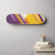 Skateboard shown in a multi purple and gold colours abstract graphic print.