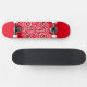 Skateboard shown in a solid colour of red with a artful black and white swirl graphic print. Buy as is or customise this item to your liking.