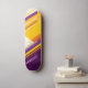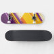 Skateboard shown in a multi purple and gold colours abstract graphic print.