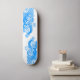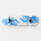 Skateboard shown in a blue colour wave graphic print.