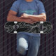 This quality made skateboard is shown with a abstract art pattern print in colours of black and grey.