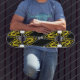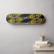 This quality made skateboard is shown with a abstract art pattern print in colours of black, grey and yellow.