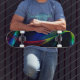 Skateboard shown in a multi colour abstract smoke graphic print.