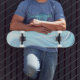 This quality made skateboard is shown with a abstract art pattern print in colours of blue multi.