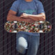 Skateboard covered with coloured locks design