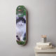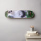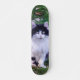 The skateboard has a specific design inspired by a long-haired Maine Coon cat. This suggests that the skateboard surface presents an illustration that represents distinctive features of a Maine Coon cat, such as its long coat and other characteristic physical features of this race, such as large ears and a robust body. The design is colorful and detailed to capture the unique look of a Maine Coon. In short, it is a personalized skateboard with a theme that highlights the beauty and uniqueness of the Maine Coon cats.