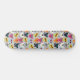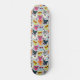Skateboard with colourful cats wearing glasses and sunglasses.