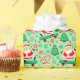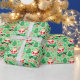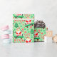 Creative skateboarding holiday gift wrap featuring funny Santa skateboarder surrounded by Christmas candy and cookies.
