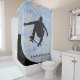 Skateboarding Design Shower Curtain, featuring a skateboarder silhouette against a graffiti-style backdrop. Accent colour can be customised to colour of choice. Great for the skateboarding enthusiast on your shopping list!