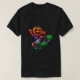 I give wanted to give this a 4 instead of a 5 because these Basic DARK T0shirts run unexpectedly SLIM or Narrow. Which is great if you do not have a potbelly, but I have a paunch. It isn't the shirt's fault that I've got a beer belly. The design and shirt itself is a quality cotton shirt. The color is more of a deep purple, but still a very pretty color. The Basic DARK T-shirts run a bit SLIMMER than the Basic Ts. The neck is a fraction narrower (or seems to be narrower) also. I'm a paunchy middle-aged woman and my neck is 12 inches (31cm) thick and the neckline fell about the same as in the photo of the man, and I had the desire to tug it a bit. So if you're a thick necked man or like loose shirts, be aware these are slimmer shirts. Once I get rid of my lockdown paunch it'll look great. The shirt washed well in cold water with no apparent bleeding. We don't have a dryer, so it hung dry. Did not shrink. Love the colors and the design. The design looks smaller on my shirt than it does on the model on-line. But still, it looks good on the shirt. The printing looks as it does on the model, just the size seems fractionally smaller. Washed garment in cold water, hung dry and design appeared unaffected.