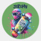 Celebrate in style with our custom monogrammed round sticker, featuring a trendy skater dressed up and holding his skateboard. This vibrant sticker showcases the birthday celebrant's name in a bold, eye-catching font, perfectly capturing the festive spirit. Ideal for any skateboarding enthusiast, this sticker adds a fun and personal touch to the birthday celebration.