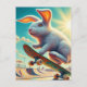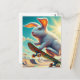 Skateboarding White Bunny Surreal Colourful and Fu Postcard