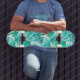 Skateboarding with jungle leaves in background skateboard
