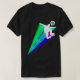I give wanted to give this a 4 instead of a 5 because these Basic DARK T0shirts run unexpectedly SLIM or Narrow. Which is great if you do not have a potbelly, but I have a paunch. It isn't the shirt's fault that I've got a beer belly. The design and shirt itself is a quality cotton shirt. The color is more of a deep purple, but still a very pretty color. The Basic DARK T-shirts run a bit SLIMMER than the Basic Ts. The neck is a fraction narrower (or seems to be narrower) also. I'm a paunchy middle-aged woman and my neck is 12 inches (31cm) thick and the neckline fell about the same as in the photo of the man, and I had the desire to tug it a bit. So if you're a thick necked man or like loose shirts, be aware these are slimmer shirts. Once I get rid of my lockdown paunch it'll look great. The shirt washed well in cold water with no apparent bleeding. We don't have a dryer, so it hung dry. Did not shrink. Love the colors and the design. The design looks smaller on my shirt than it does on the model on-line. But still, it looks good on the shirt. The printing looks as it does on the model, just the size seems fractionally smaller. Washed garment in cold water, hung dry and design appeared unaffected.