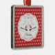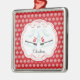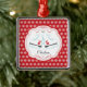 Dated & personalised cute pair of ice skates Christmas Ornament set on a Red & White snowflake pattern background. A Wonder Christmas gift sure to be treasured for many years to come.