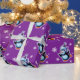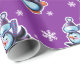 Christmas giftwrap Skating Penguin. purple background. See also my other designs featuring Snowfolk Winter Wonderland sledging. Sledding. Lovable wintery characters with sledging snowgirls, skiing snowmen and skating snowmen. : ) Also check out the matching lovable wintery snowmen and snowgirl characters playing their instruments in a Christmas band. A striking giftwrap design to brighten up your presents when the snow starts falling. See the other items in this seasonal range.