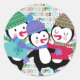 Skating Penguins Holiday Round Sticker