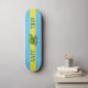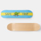 Skating turtle & calligraphy on turquoise & yellow skateboard