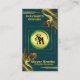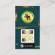 Unique green and gold QR code modern, minimalist elegant and professional business card design with template fields for name, company name/title, logo and contact information. Change font colours, move and resize elements with the customisation tool.