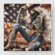 Skeleton Cowgirl Western Outfit Patriotic American Square Wall Clock