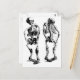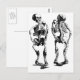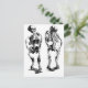 Skeleton dance postcard: this vintage anatomy art is by Jacques Gamelin 1738-1803 from the New collection of osteology and mycology. It depicts the front and back of a dancing skeleton. the bones appear to be warped somewhat not sure if this is due to some medical irregularity or just an unusual pose.