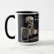 These skeletons are very optimistic. They are sitting around the table on the pirate ship facing one another. One says “It could be worse…”. The other says “yea, we could be out of coffee!” Enjoy the customisable mug. You can change the saying as well as the names on the mugs the characters are holding.