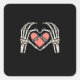 Skeleton Hand Heart Skateboard Valentines Day Funn Square Sticker