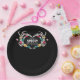 Classic skeleton hand with a heart graphic in a clean bold layout.