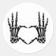 Skeleton hands forming a heart shape, ideal for spooky Halloween decor.