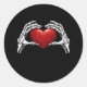 Skeleton Hands Holding A Red Heart Design Classic Classic Round Sticker