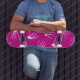 Skeleton hand pattern on a hot pink background is a fun skateboard design for anyone who loves skeletons.