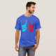 I give wanted to give this a 4 instead of a 5 because these Basic DARK T0shirts run unexpectedly SLIM or Narrow. Which is great if you do not have a potbelly, but I have a paunch. It isn't the shirt's fault that I've got a beer belly. The design and shirt itself is a quality cotton shirt. The color is more of a deep purple, but still a very pretty color. The Basic DARK T-shirts run a bit SLIMMER than the Basic Ts. The neck is a fraction narrower (or seems to be narrower) also. I'm a paunchy middle-aged woman and my neck is 12 inches (31cm) thick and the neckline fell about the same as in the photo of the man, and I had the desire to tug it a bit. So if you're a thick necked man or like loose shirts, be aware these are slimmer shirts. Once I get rid of my lockdown paunch it'll look great. The shirt washed well in cold water with no apparent bleeding. We don't have a dryer, so it hung dry. Did not shrink. Love the colors and the design. The design looks smaller on my shirt than it does on the model on-line. But still, it looks good on the shirt. The printing looks as it does on the model, just the size seems fractionally smaller. Washed garment in cold water, hung dry and design appeared unaffected.