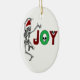 A skeleton donning a Santa hat dances happily. To his right: JOY is written skull font in festive holiday shades of red and green. Fun, quirky design for those who like all things holiday skeleton-style. The skull font is called Skullphabet by http://www.skulladay.com.