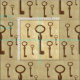 Copper coloured skeleton keys on a sandy vintage background.