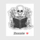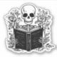 Skeleton reading a book sticker. Floral dark romance academia roses flowers black and white aesthetic. Funny book lover romance reader gift idea laptop accessory room decor.