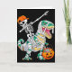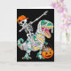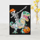 Skeleton Riding Dancing Dab Dinosaur T Rex Hallowe Card