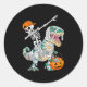 Skeleton Riding Dancing Dab Dinosaur T Rex Hallowe Classic Round Sticker