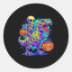 Skeleton Riding Mummy Dinosaur T Rex Halloween Fun Classic Round Sticker